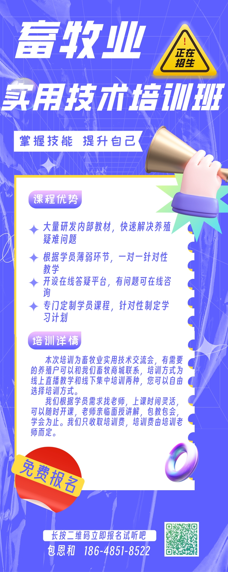1、專業(yè)技術(shù):培訓(xùn)由經(jīng)驗(yàn)豐富的專家授課,確保學(xué)員接受到專業(yè)的養(yǎng)牛技術(shù)教育。