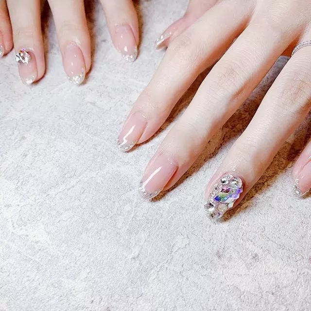 ??閃亮鉆石法式:誰不喜歡閃閃發光的指甲呢?這款閃亮鉆石法式將鉆石元素與法式優雅完美結合,讓你的指甲散發出迷人的光彩,透明或半透明的底色,點綴著閃耀的鉆石,無論是日常還是派對場合,都能成為焦點。