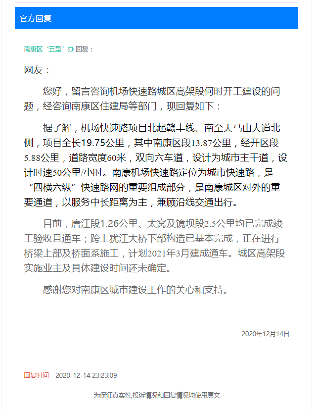 南康機場路建設的新動態